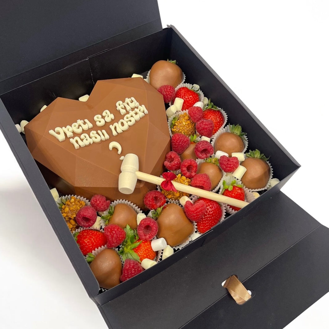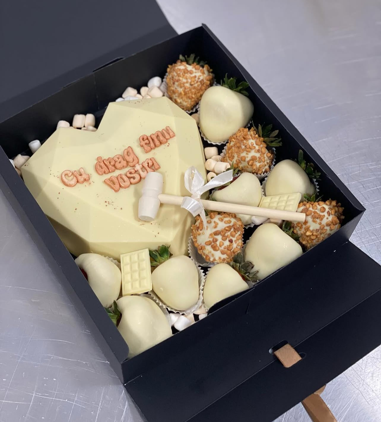 Ciocanelul din Lemn: Descopera bucuria de a sparge inima de ciocolata cu un ciocanel de lemn inclus.