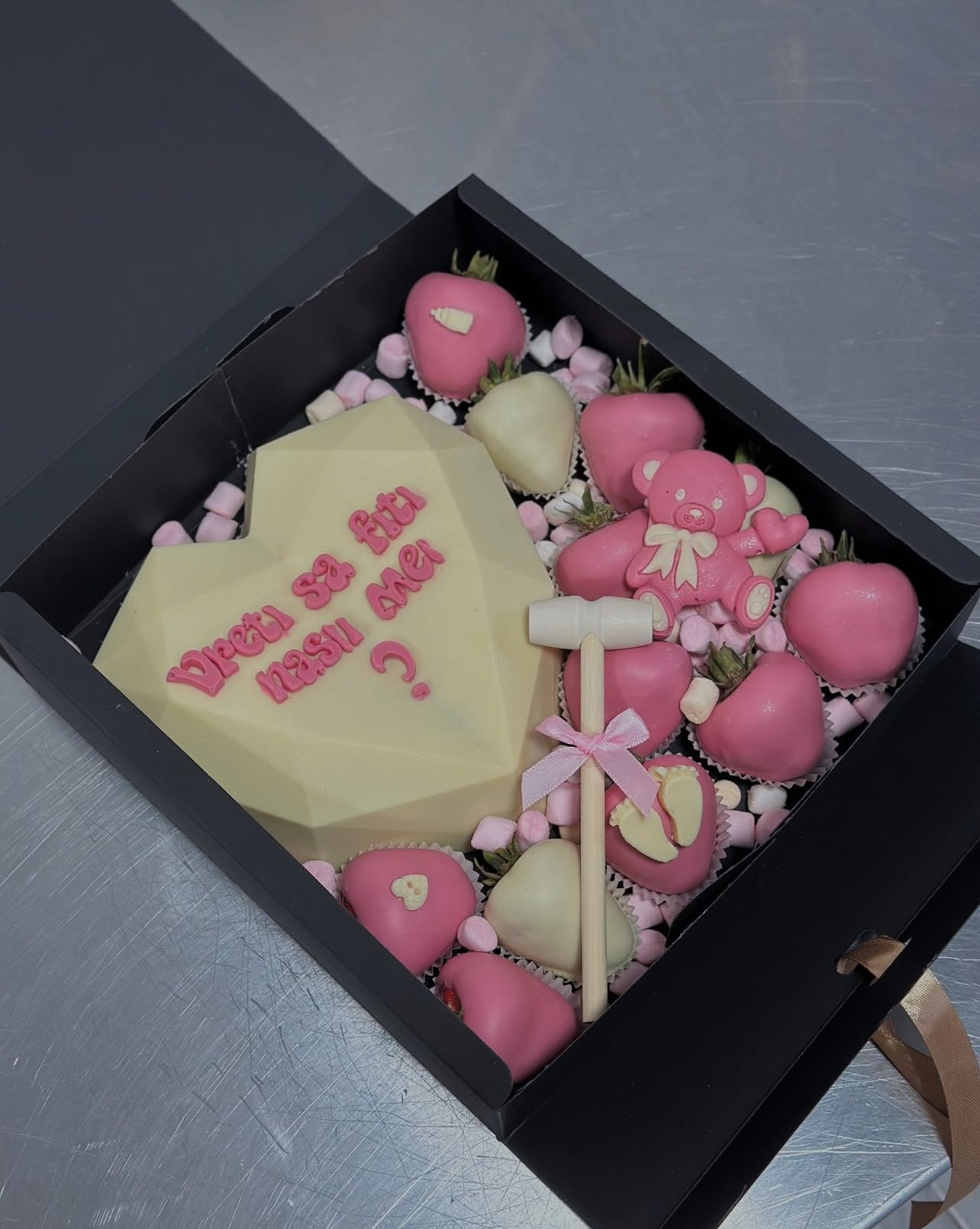 Personalizare Cu Surprize Aditionale: Poti adauga sub inima de ciocolata alte surprize personalizate, precum un mesaj de dragoste, un mic cadou, bilete la film, o bijuterie sau orice altceva doreste inima ta.