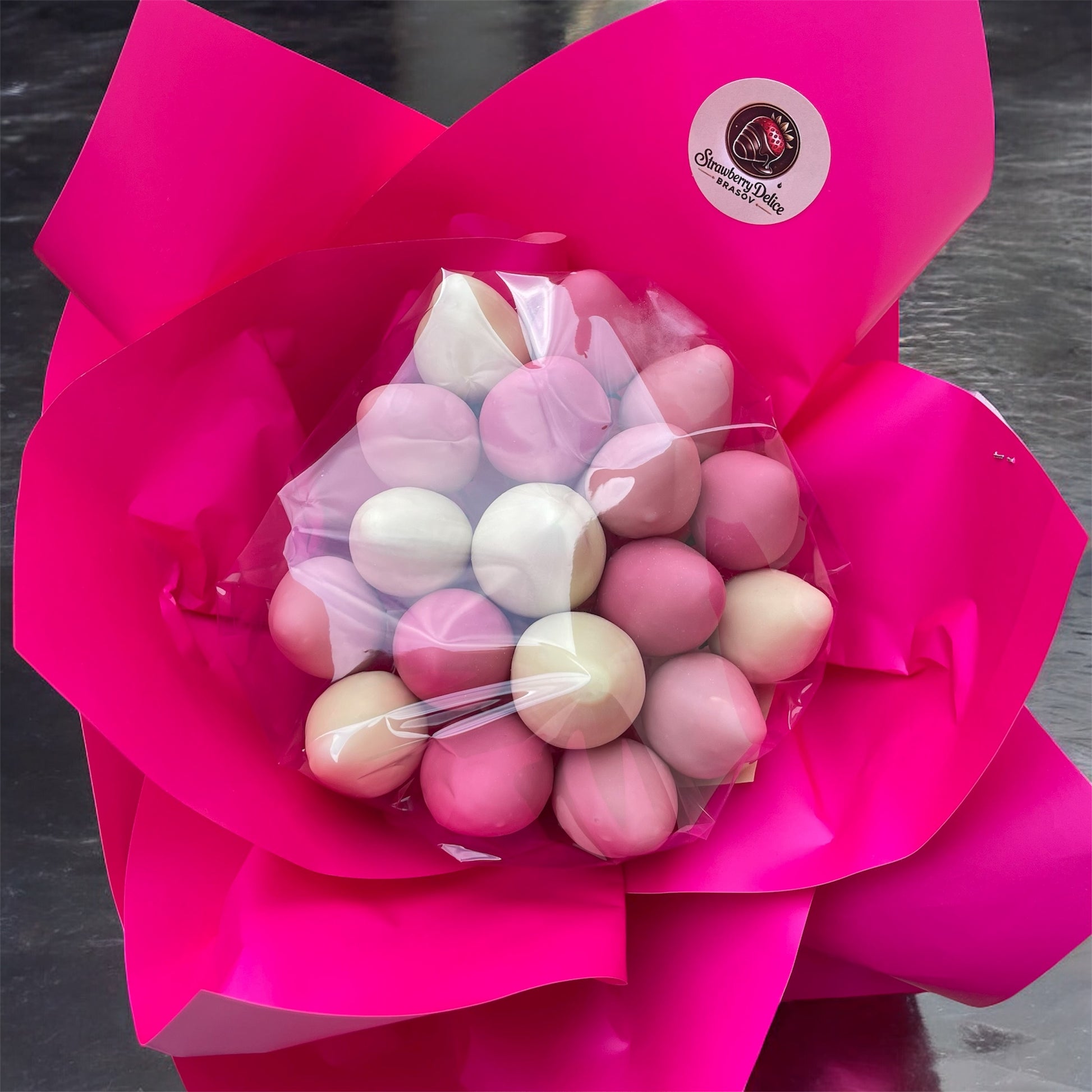 Pentru a sublinia frumusetea si eleganta acestor delicii, fiecare buchet de capsune in ciocolata este ambalat pentru a deveni un cadou perfect pentru orice ocazie speciala.
