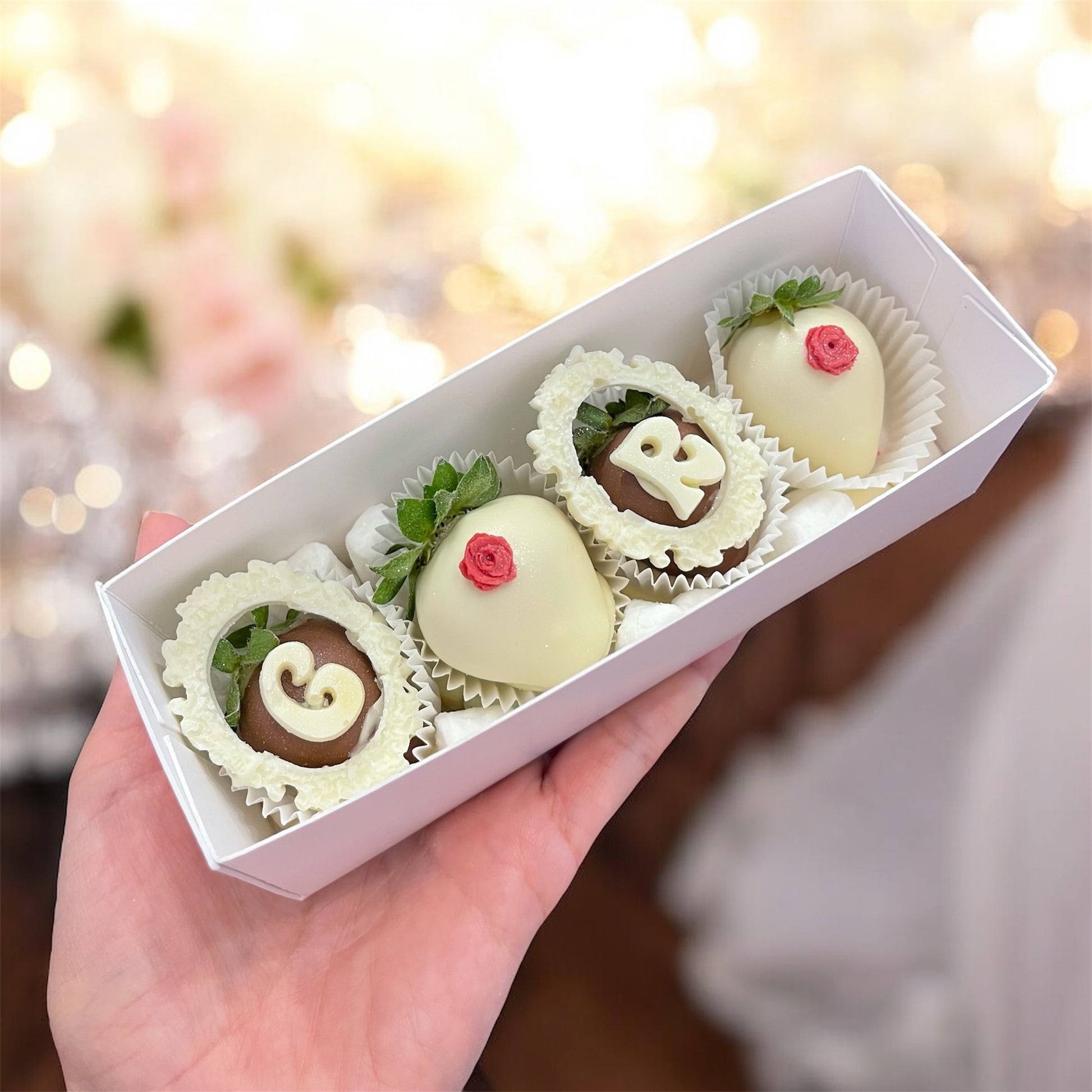 Box-urile noastre de 3 capsune invelite in ciocolata sunt perfecte pentru evenimente speciale precum nunti, botezuri sau alte petreceri. Mini box-urile pot fi oferite ca marturii sau ca un mic cadou invitatiilor tai.