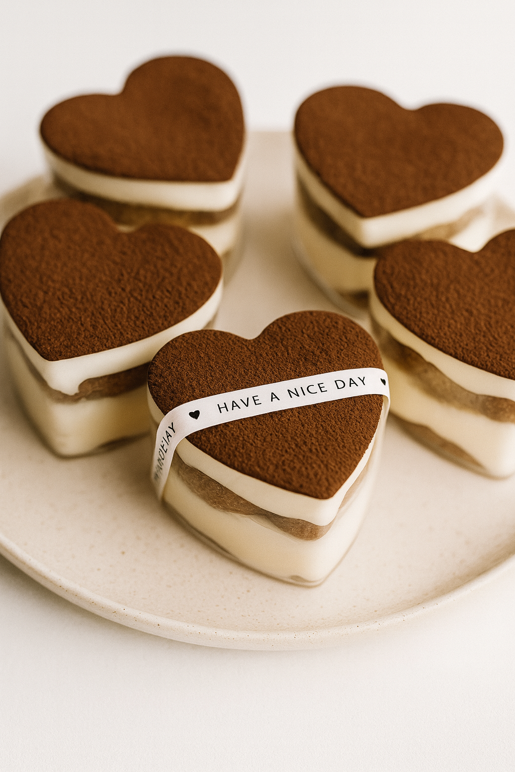 Tiramisu-ul nostru în formă de inimă combină gustul clasic italian cu o prezentare elegantă, perfect pentru a fi oferit cadou sau pentru a adăuga un strop de rafinament oricărei ocazii.